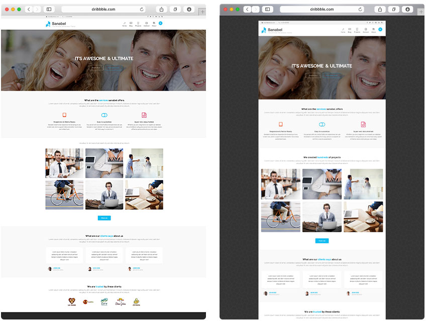 In Sanabel you can easily switch between boxed and wide layouts, in boxed version you can select from exist patterns, upload a new pattern or upload your own background image and display it the way you want.